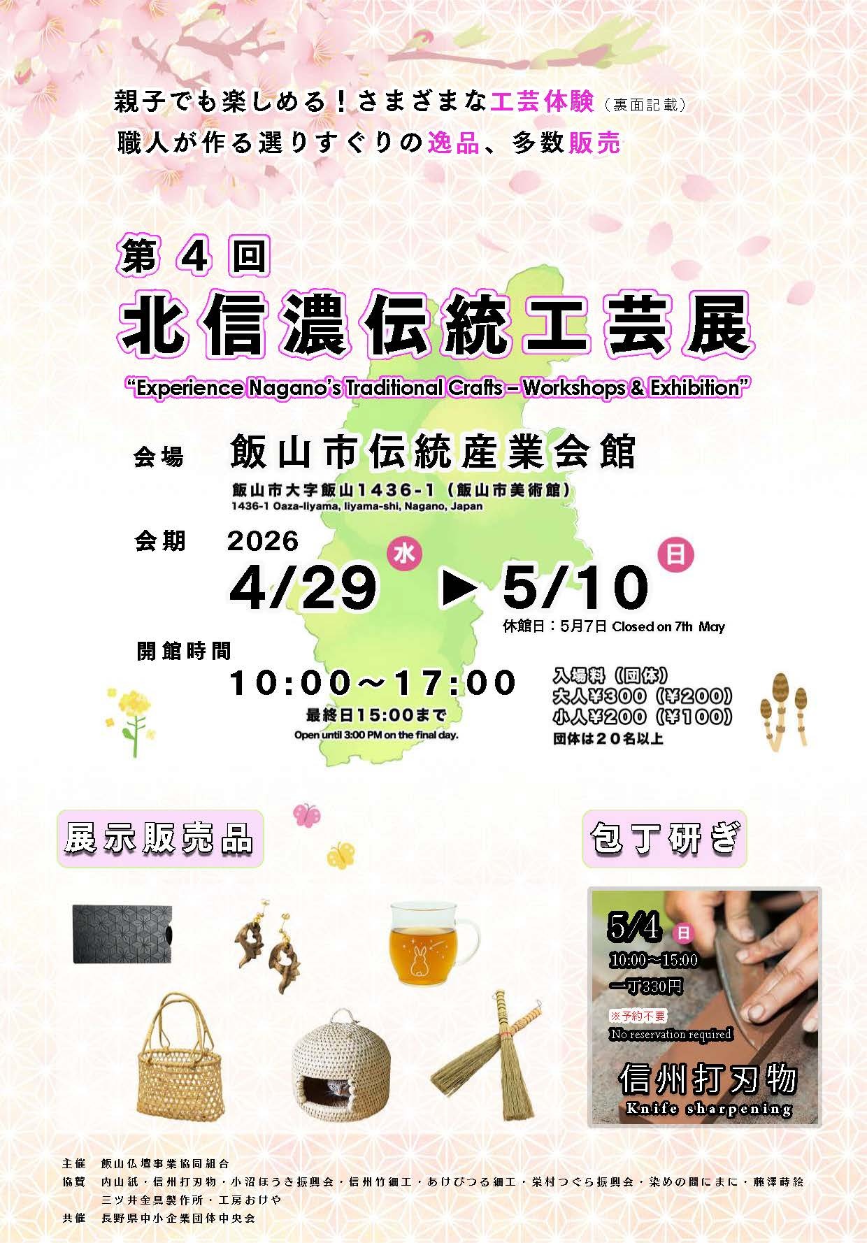 「第4回 北信濃伝統工芸展」は4月29日(水)から5月10日(日)まで、飯山市伝統産業会館で開催します。