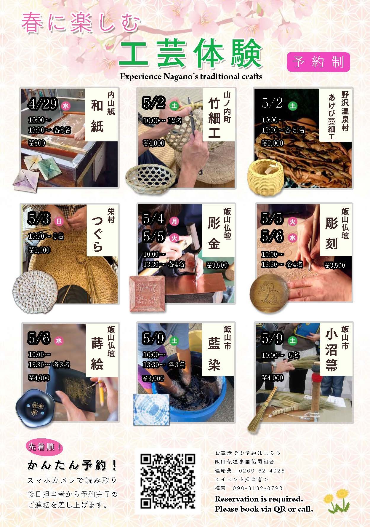 | 予約について | 工芸体験は要予約。 専用フォームまたは電話にて受付中。 |