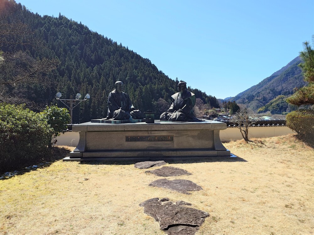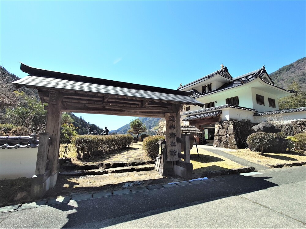 伝統芸能「霜月祭り」をマルチビジョンで紹介。祭りに使う面の複製を展示しています。庭には遠山土佐守・徳川家康対面像もあります。